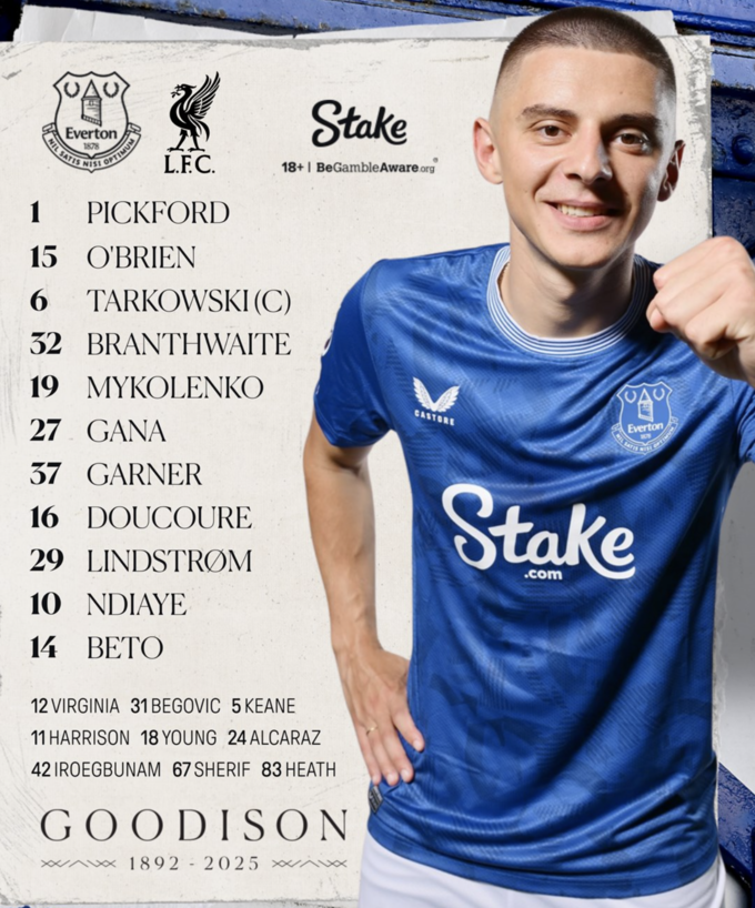«Эвертон»: Пикфорд, О'Брайен, Тарковски, Брентвейнт, Миколенко, Гарнер, Гуйе, Линдстрем, Дукуре, Ндиайе, Бету