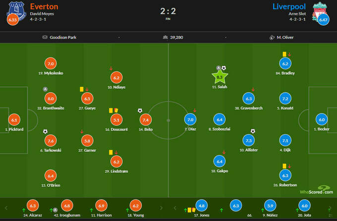 Оценка матча «Эвертон» – «Ливерпуль» от WhoScored