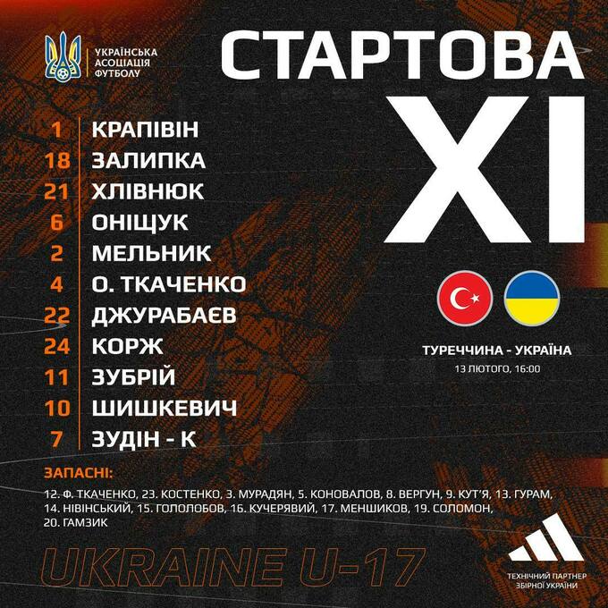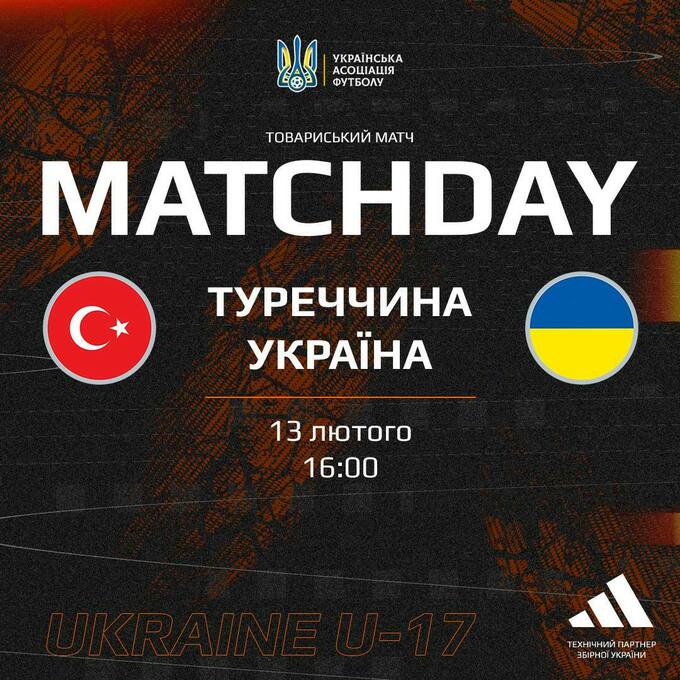 13 февраля в 16:00 юношеская сборная Украины U-17 провела в Хорватии товарищеский поединок против команды Турции U-17.