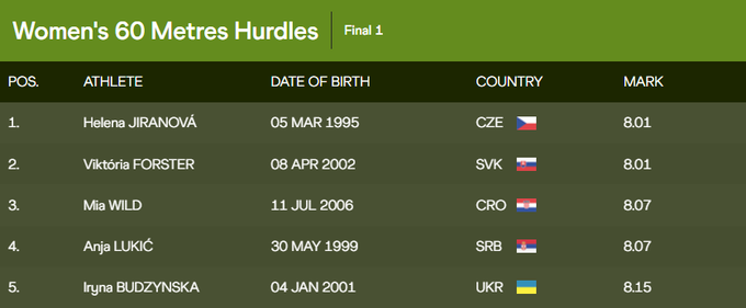 - 1. Гелена Йиранова (Чехия) – 8.01 с