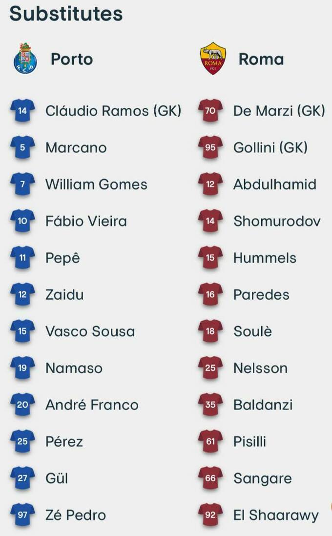 Стартовые составы на матч «Порту» – «Рома»: