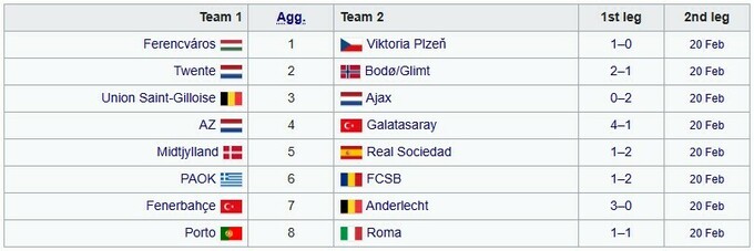 Вечером 13 февраля состоялись поединки 1/16 финала Лиги Европы