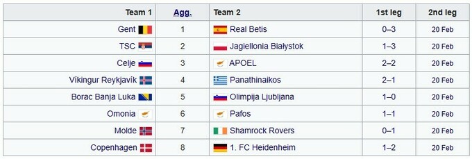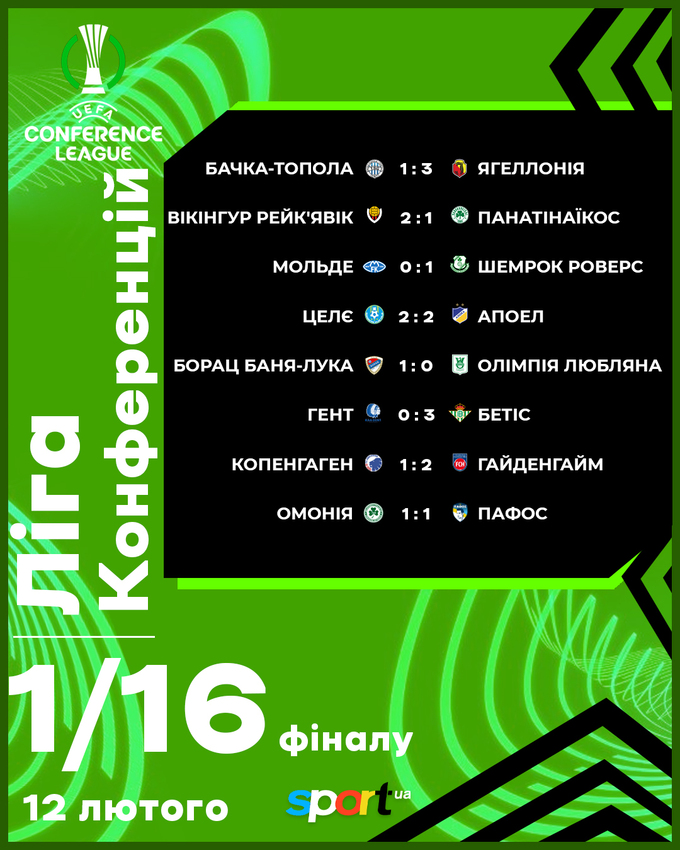 Вечером 13 февраля состоялись поединки 1/16 финала Лиги конференций