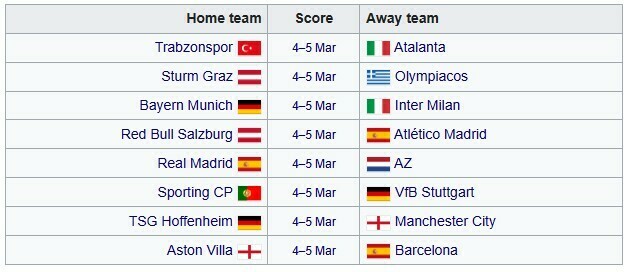Наиболее интересными парами 1/8 финала стали: Бавария – Интер, Хоффенхайм – Манчестер Сити, Астон Вилла – Барселона, Реал Мадрид – АЗ Алкмаар.
