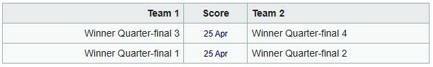 - SF1. Победитель матча QF3 – Победитель матча QF4