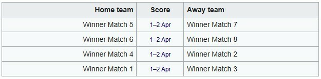 Матчи 1/8 финала состоятся 4/5 марта, а четвертьфиналы запланированы на 1/2 апреля.