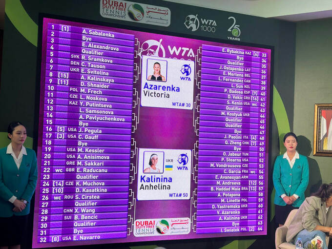 15 февраля состоялась жеребьевка хардового турнира WTA 1000 в Дубае, ОАЭ.