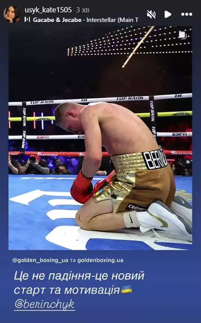 На поражение Беринчика отреагировала жена звездного украинского боксера Александра Усика Екатерина.