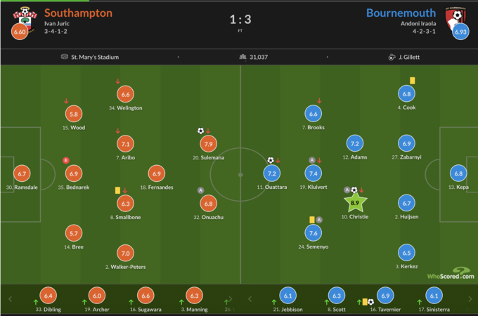Оценки матча Сатугемптон – Борнмут от WhoScored