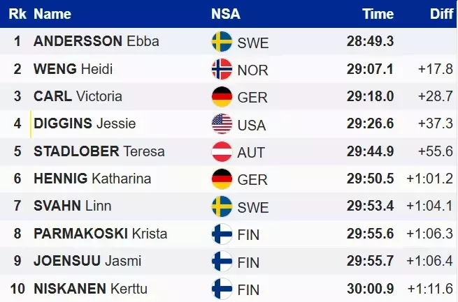 Лыжные гонки. Диггинс снова вне топ-3, Андерссон триумфовала в разделке