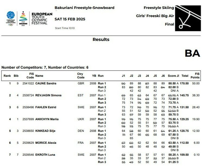 15 февраля на зимнем Европейском юношеском олимпийском фестивале представительница сборной Украины соревновалась в фристайле.