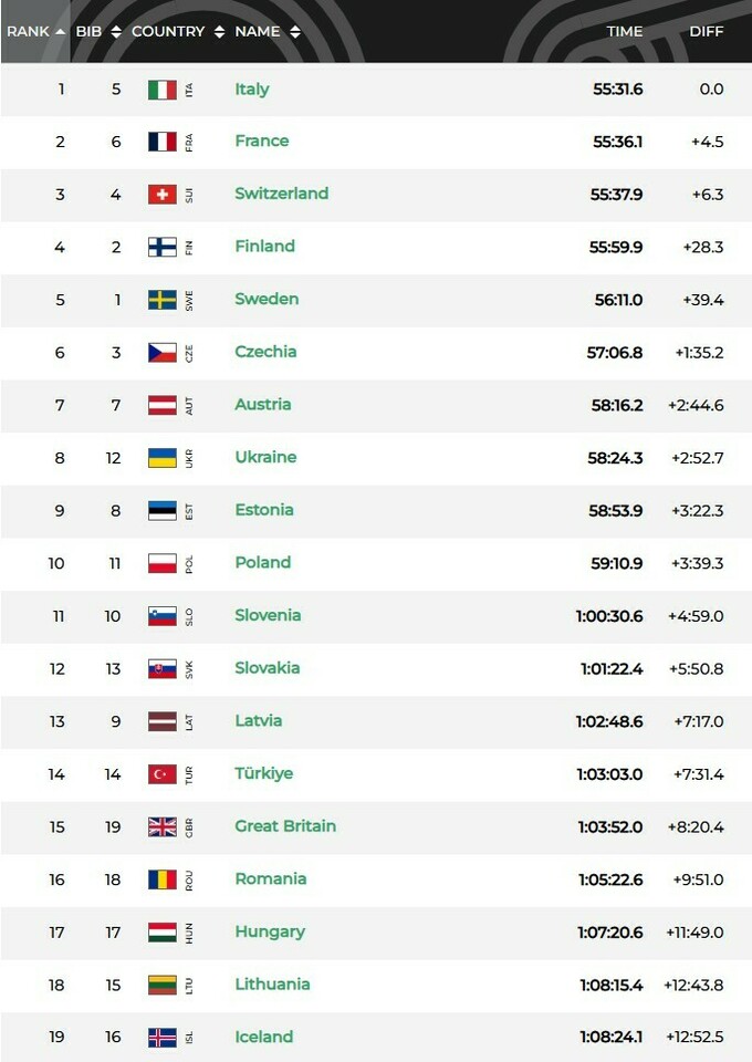 В топ-3 лыжной эстафеты вошли сборные Италии, Франции и Швейцарии.