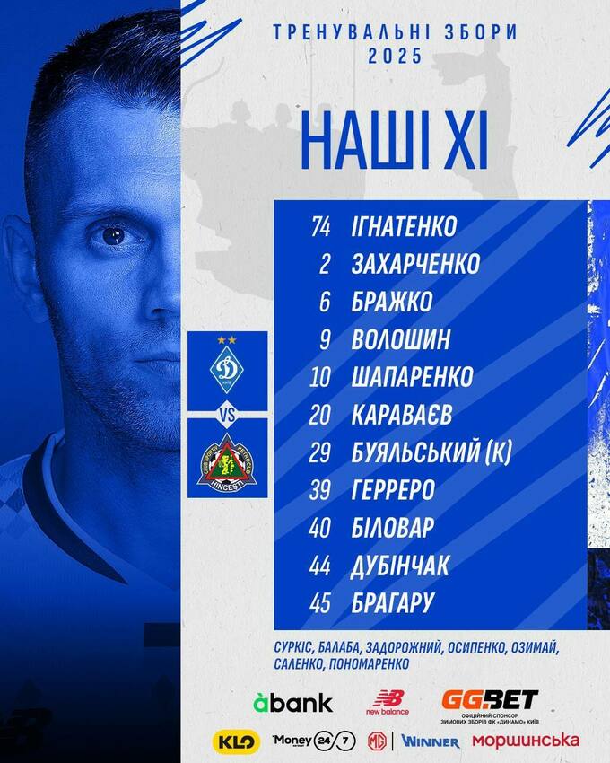 «Динамо»: Игнатенко, Захарченко, Бражко, Волошин, Шапаренко, Караваев, Буяльский, Герреро, Биловар, Дубинчак, Брагару.