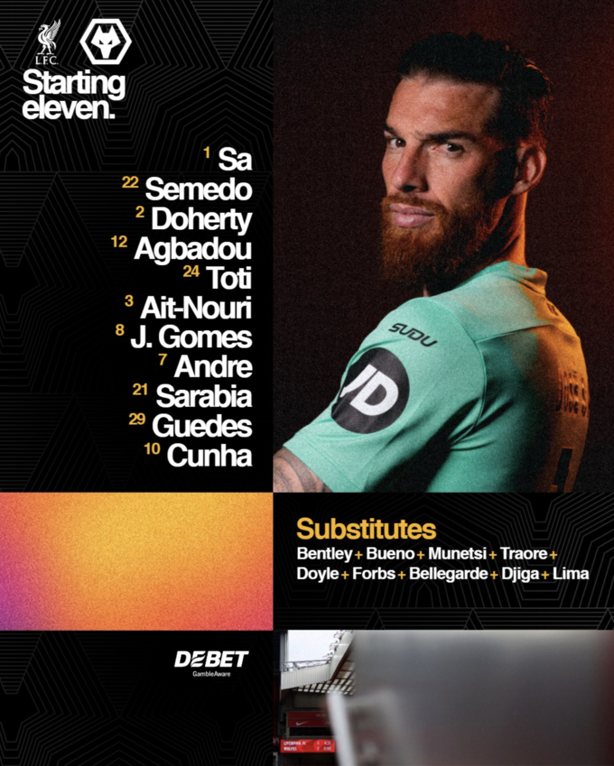 Ливерпуль принимает Вулверхэмптон. Тренеры объявили стартовые составы
