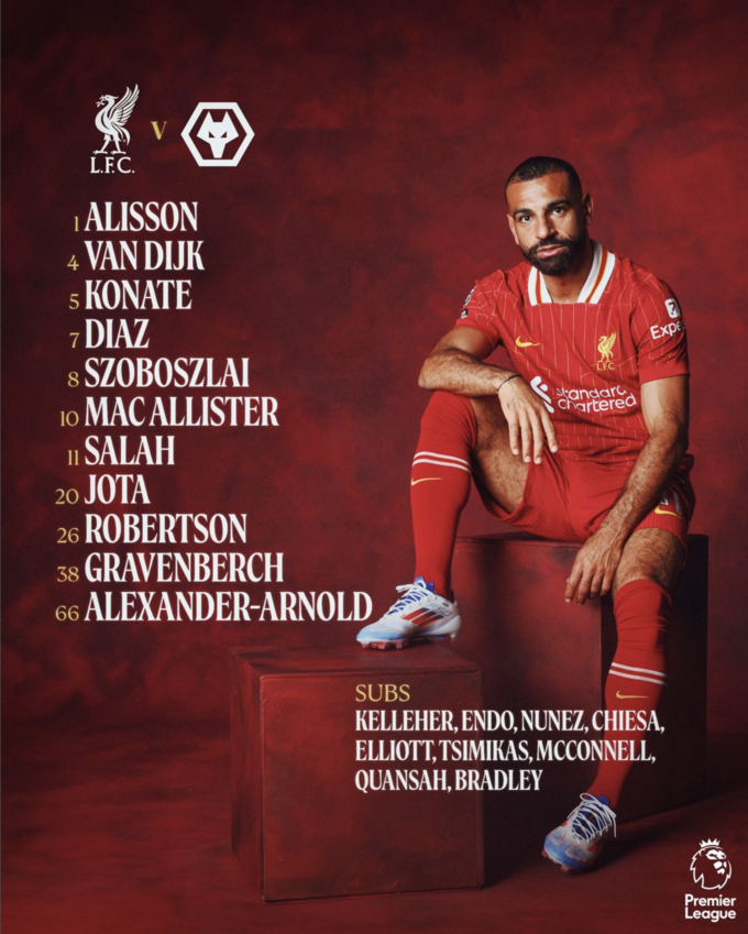 «Ливерпуль»: Алиссон, Александер-Арнольд, Конате, Ван Дейк, Робертсон, Гравенберх, Макаллистер, Салах, Собослай, Диас, Диогу Жота