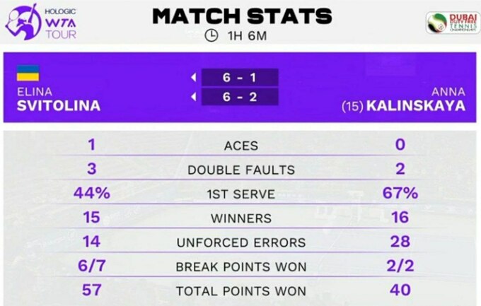 Свитолина уничтожила нейтральную 18-ю ракетку на супертурнире в Дубае