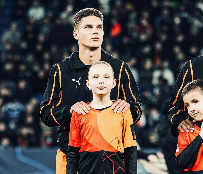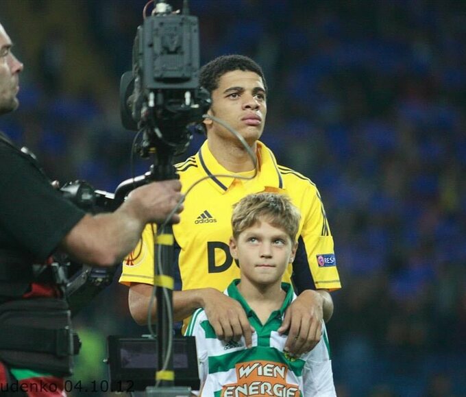 22-летний футболист поделился любопытным фото из прошлого, на котором он стоит в футболке «Рапида» и рядом с экс-нападающим «Металлиста» Тайсоном. А следующим фото он опубликовал снимок из теперешнего, где уже взрослый Судаков стоит с маленькой девочкой.