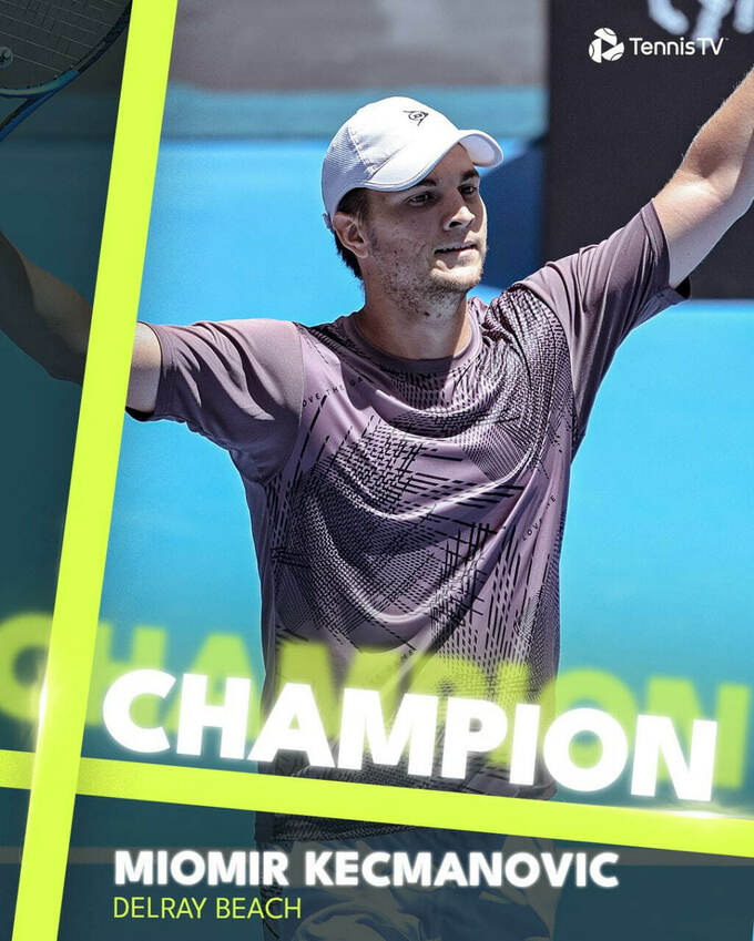 TWO championship points saved 🔜 @MioKecmanovic prevails 3-6 6-1 7-5 @DelrayBeachOpen | #DBOpen pic.twitter.com/7P4RxxbELO