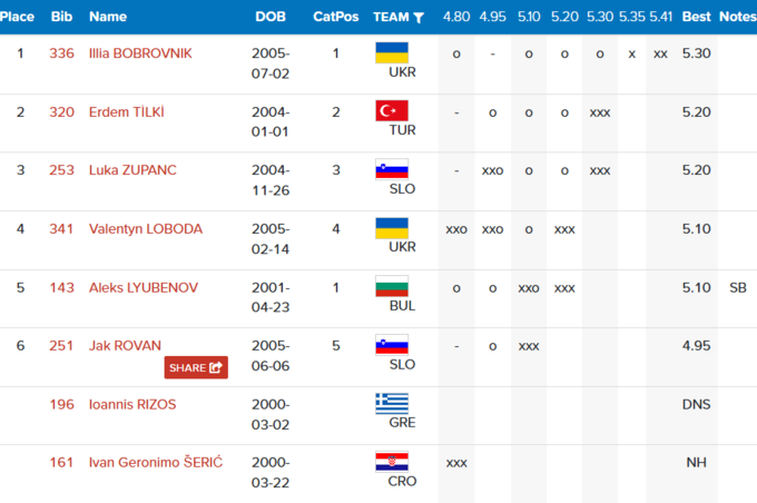 - 3. Лука Зупанч (Словения) – 5.20 м