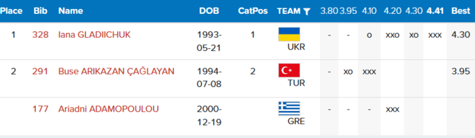 - 1. Яна Гладийчук (Украина) – 4.30 м