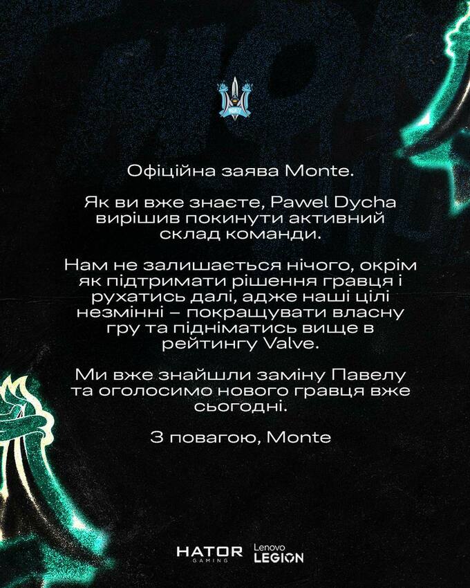 Как говорится в заявлении клуба, Monte поддержали решение польского игрока и продолжат двигаться вперёд с неизменными целями – улучшать свою игру и подниматься в рейтинге Valve.