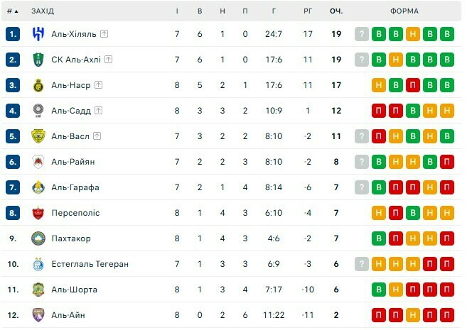 Саудовские команды Аль-Хиляль и Аль-Ахли имеют по 19 очков из 21 и возглавляют Западную зону. На третьем месте завершил основной раунд Аль-Наср (17 из 24).