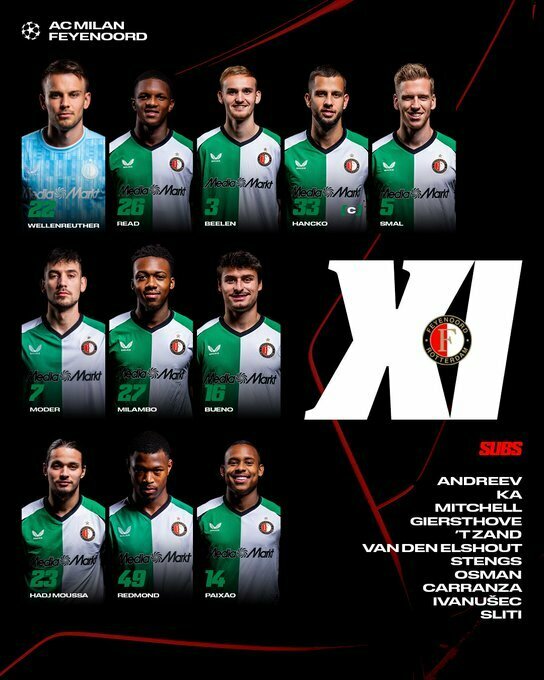 Стартовые составы на матч «Милан» – «Фейеноорд»: