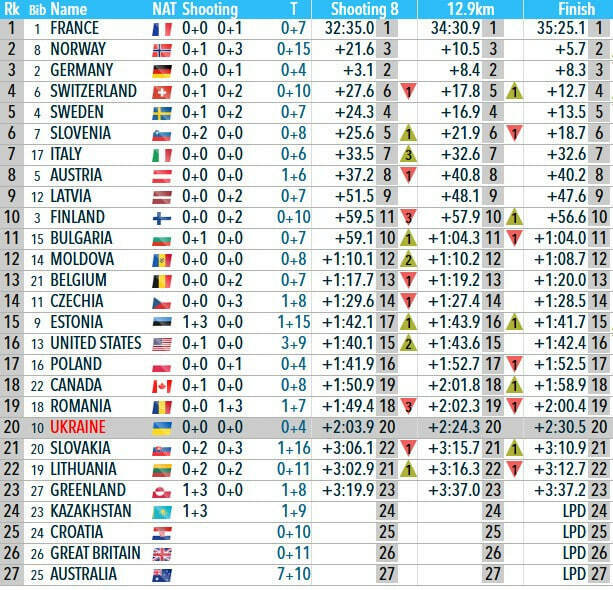 Украинская команда откровенно провалила сингл-микст. Юлия и Антон показали стрельбу на уровне сборной Германии – использовали четыре запасных патрона, однако финишировали украинцы далеко за пределами топ-10. Работа на лыжах совсем не задалась, поэтому Украине удалось завершить гонку на 20-й позиции.