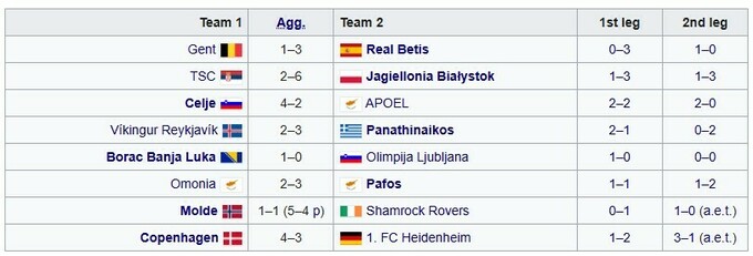 Вылетел немецкий клуб Хайденхайм, который в овертайме по сумме двух матчей уступил команде Копенгаген (1:3 д.в.)