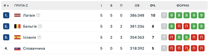 Латвия разгромила сборную Испании - 83:66. Бельгийцы не оставили шансов словакам - 93:63.