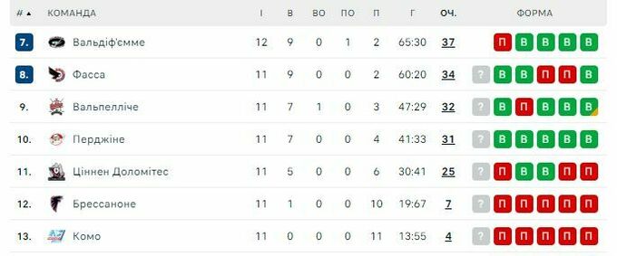 Претендент на место в кубковой восьмерке «Фасса» выиграла свой поединок у «Брессаноне» (4:1) и тем самым сохранила проходную позицию в таблице. Как всегда, ощутимый вклад в успех команды внес неувядающий 41-летний Андрей Михнов, который забил и отдал пас в этой встрече. Всего в 34 матчах текущего сезона экс-форвард «Сокола», «Донбасса» и сборной Украины набрал уже 65 (24+41) очков в 34 играх.