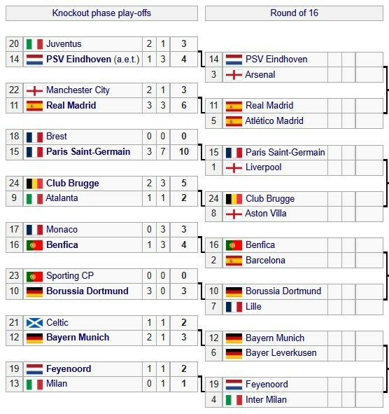 В других парах встретятся: ПСЖ (Франция) – Ливерпуль (Англия), Брюгге (Бельгия) – Астон Вилла (Англия), Фейеноорд (Нидерланды) – Интер (Италия), Боруссия Д (Германия) – Лилль (Франция).