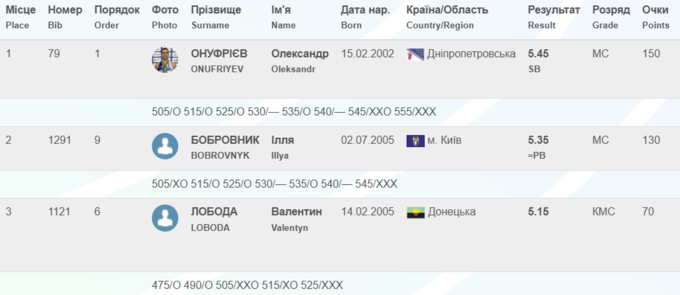 - Александр Онуфриев (Днепропетровская область) – 5.45 м