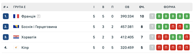 Хорватия – Франция 80:83 (17:20, 18:17, 16:22, 29:24)