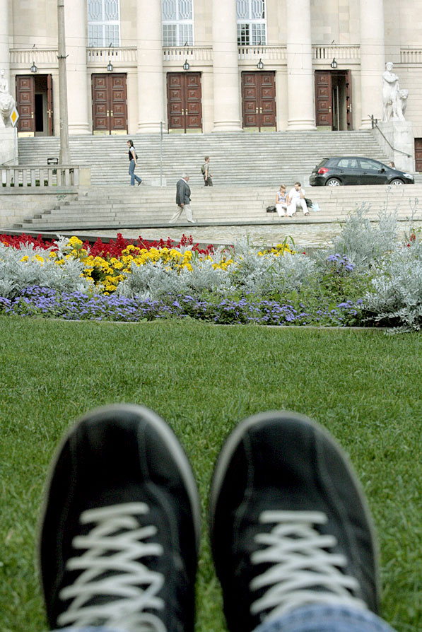 В этот раз удалось неплохо выспаться. Затем нас ожидала встреча с мэрией Познани, местным бюро по подготовке к Евро-2012 и директором компании, которая занимается реконструкцией стадиона. Подробно об этом я расскажу в специальном репортаже о Познани. Снова наслушавшись польского английского от специально нанятого принимающей стороной к нашей встрече переводчика, мы отправились в центр Познани знакомиться с местными достопримечательностями. Надо признать, что Познань - очень красивый город! После пешей прогулки по городу, накопилась усталость, потому я не преминул воспользоваться отличной возможностью поваляться на газончике в самом центре Познани возле Площади Независимости.