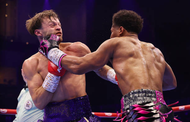 Обладатель титула Шакур Стивенсон (22–0, 10 КО) вышел на ринг против британца Джоша Пэдли (15–0, 4 КО). Стоит отметить, что претендент работает электриком – из-за тяжелого финансового положения он не может себе позволить полностью сконцентрироваться на боксе.