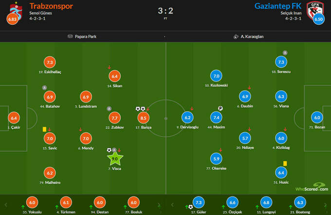 Оценки матча «Трабзонспор» – «Газиантеп» от WhoScored