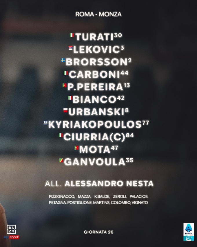 В понедельник, 24 февраля, пройдет матч 26-го тура Серии А между римской «Ромой» и «Монцой».
