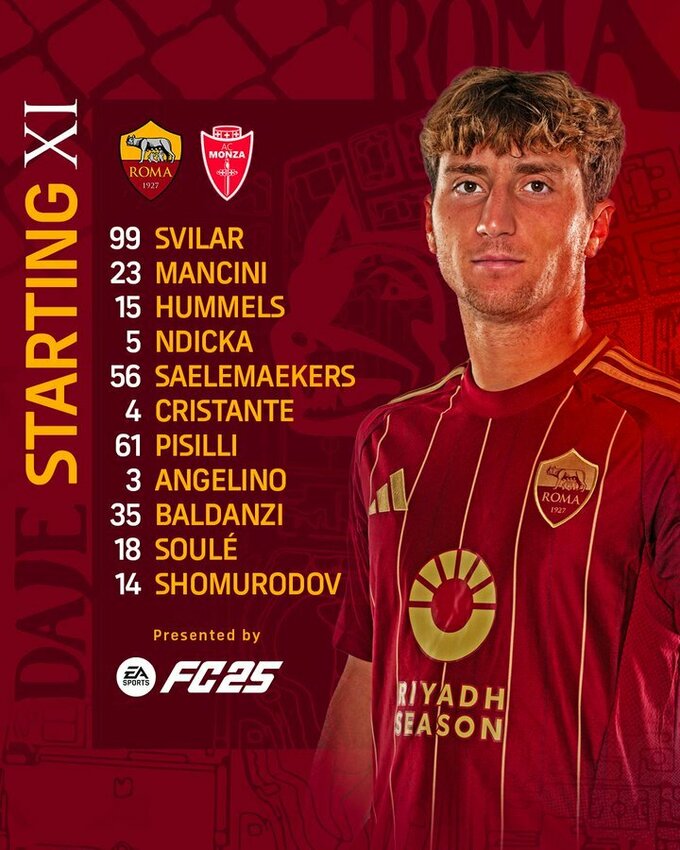 Главные тренеры определились со стартовыми составами команд. Украинский нападающий «Ромы» Артем Довбик не попал в заявку своей команды из-за травмы.