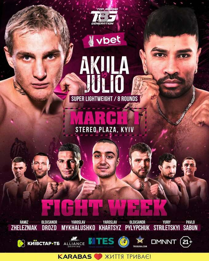 Главным событием вечера станет бой в первом полусреднем весе – украинец Андрей Боришполец (10–3, 4 КО) выйдет против опытного колумбийца Виктора Хулио (18–12, 9 КО).