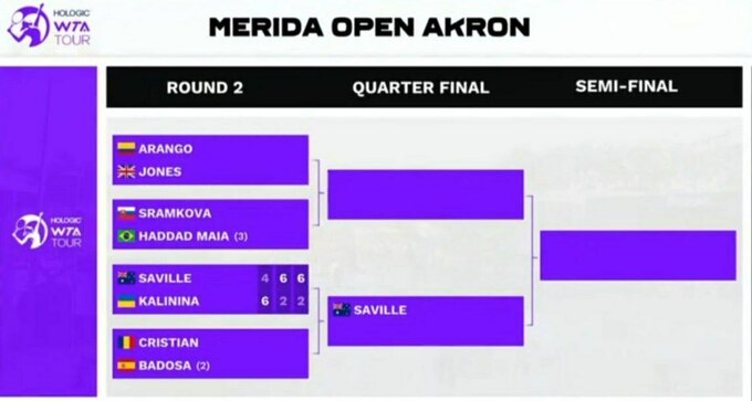 Сэвилл в Мексике стартовала в квалификации, где прошла Эллен Перес и Варвару Лепченко, а в 1-м круге основы Дарья выбила еще одну украинку – Марту Костюк. Калинина в Мериде успела переиграть только Леолию Жанжан.
