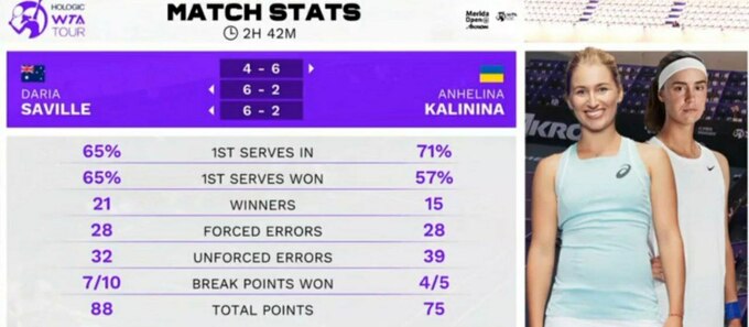 Дарья Сэвилл (Австралия) [Q] – Ангелина Калинина (Украина) – 4:6, 6:2, 6:2
