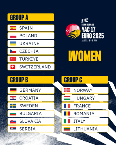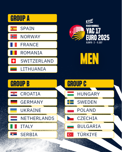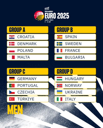 В среду, 26 февраля, состоялась жеребьевка финальной части чемпионата Европы 2025 и чемпионата Европы U-17 2025 по пляжному гандболу, которые нынешним летом пройдут в Турции.