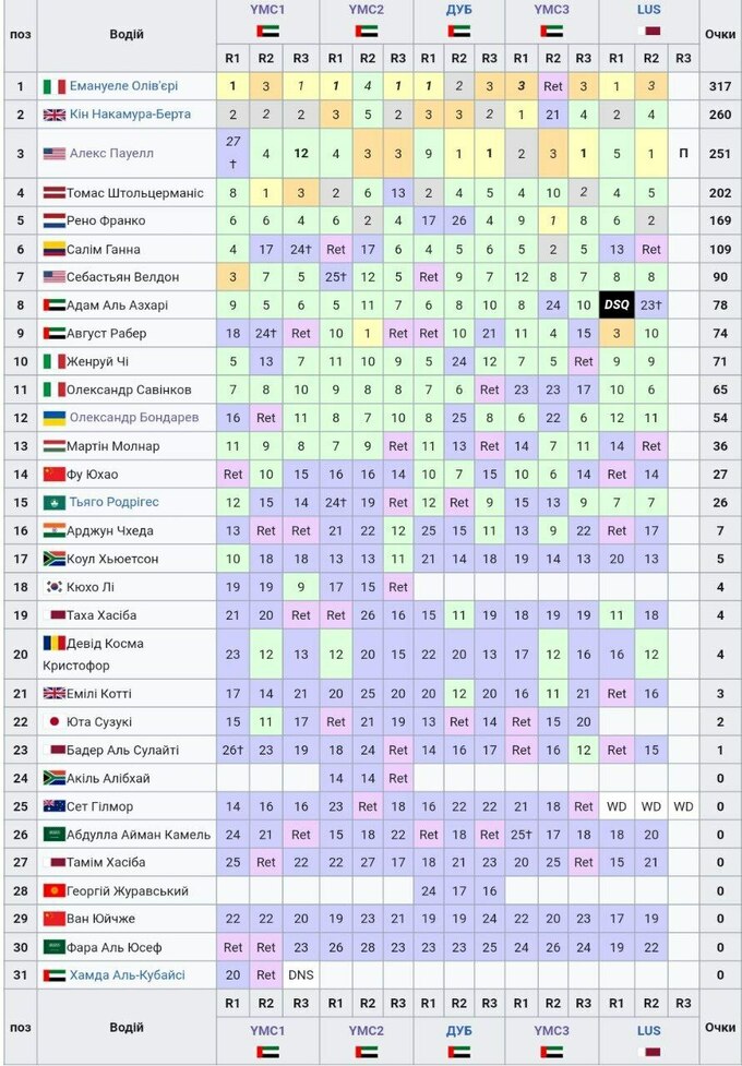 Сегодня, 27 февраля, на трассе Лусаил (Катар) состоялась вторая гонка финального этапа Формулы-4 Middle East. Победу одержал американец Алекс Пауэлл, а итальянец Эмануэль Оливьери досрочно стал чемпионом сезона 2025. Украинец Александр Бондарев финишировал 11-м.