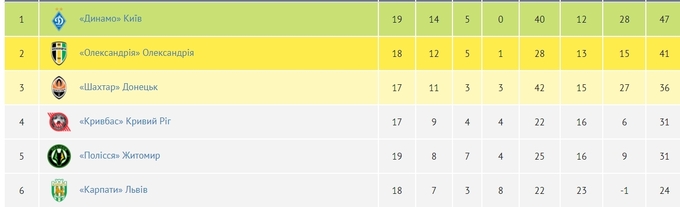 Динамо после 19 туров набрало 47 очков, опережая Шахтер на 11 пунктов.