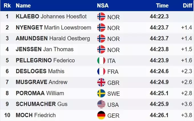 Вместе с Йоханнесом на подиуме также оказались еще два норвежца, которым удалось завоевать медали на последних метрах. Серебряным призером стал Мартин Левстрем Ньенгет, тройку замкнул Харальда Остберг Амундсен.