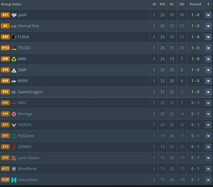 Первый день ESL Pro League Season 21 завершился, и фавориты Eternal Fire, GamerLegion и paiN перешли в группу 1:0 на первой стадии Swiss. В то же время HEROIC и 3DMAX присоединились к NRG и FlyQuest в группе 0:1 после неожиданных поражений.
