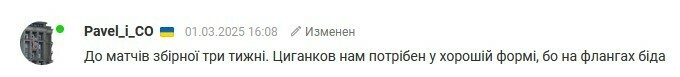 Болельщики сборной Украины рады, что Цыганков набрал форму и надеются, что он сможет помочь команде в матчах Лиги наций против сборной Бельгии.
