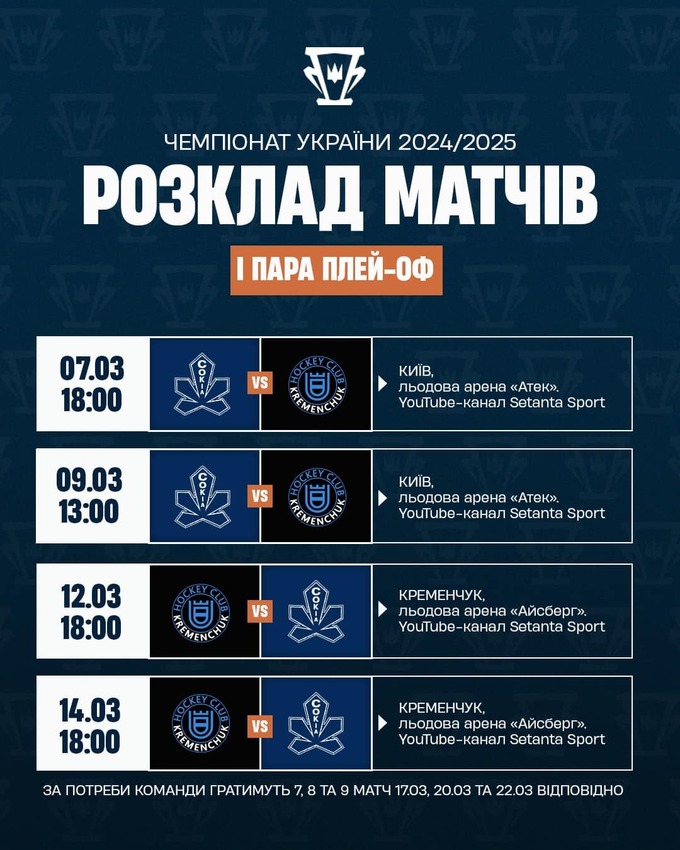 ФОТО. Календарь матчей плей-офф чемпионата Украины по хоккею