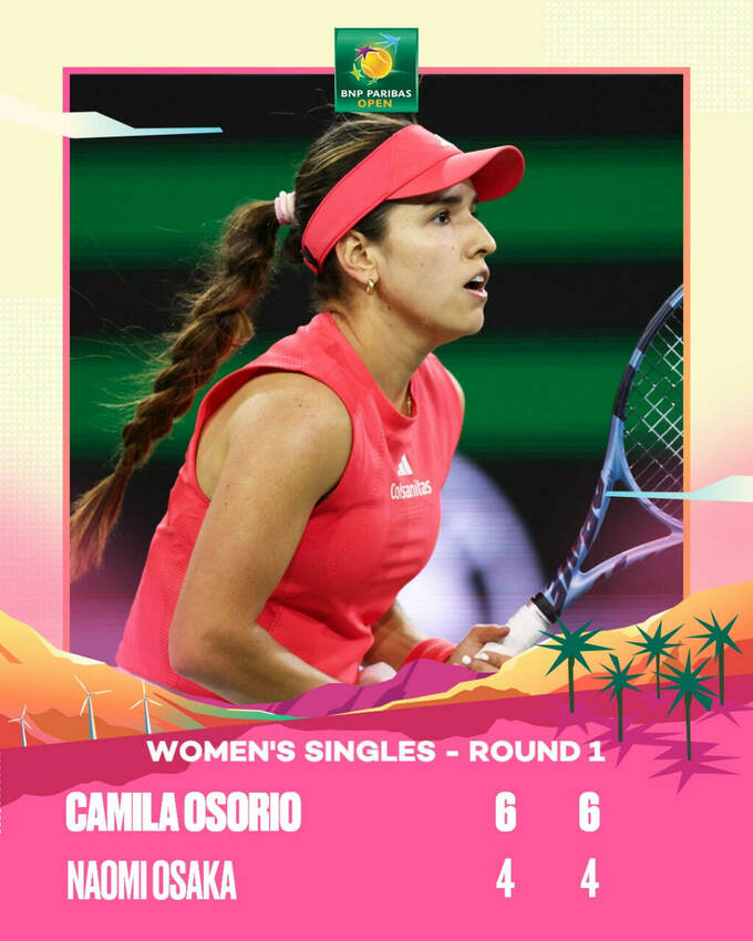 Osorio Soars ⭐️@CamiOsorioTenis knocks out Osaka 6-4, 6-4 to win her first match at Indian Wells!#TennisParadise pic.twitter.com/zpYXeJ9iZq